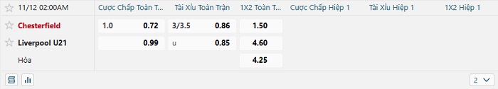 Tip kèo Châu Á full trận Chesterfield vs Liverpool U21