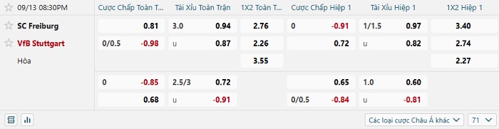 Tip kèo Châu Á full trận Freiburg vs Stuttgart