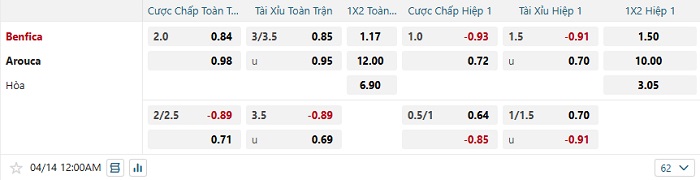 Tip kèo Châu Á full trận Benfica vs Arouca