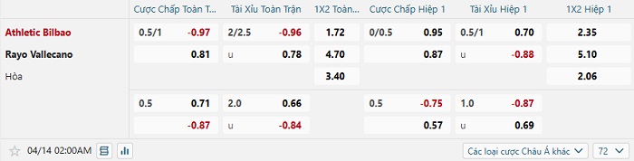 Tip kèo Châu Á hiệp 1 Bilbao vs Vallecano