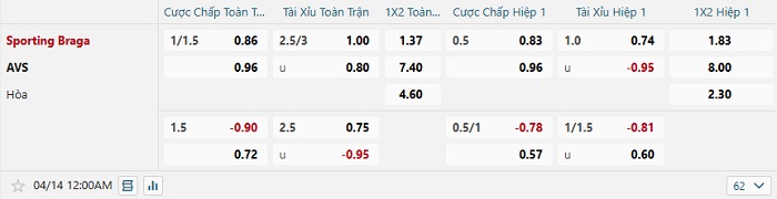Tip kèo Châu Á hiệp 1 Braga vs AVS