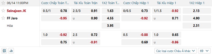 Tip kèo Châu Á hiệp 1 Seinajoen JK vs FF Jaro