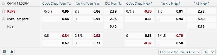 Tip kèo Châu Á hiệp 1 KuPS vs Ilves Tampere