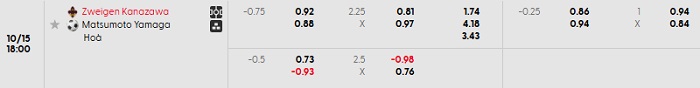 Tip kèo Châu Á full trận Zweigen vs Matsumoto