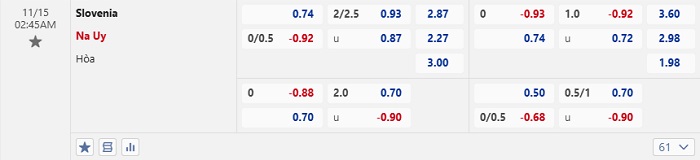 Tip kèo Châu Á full trận Slovenia vs Na Uy