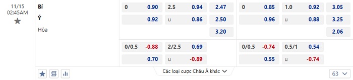 Tip kèo Châu Á full trận Bỉ vs Ý
