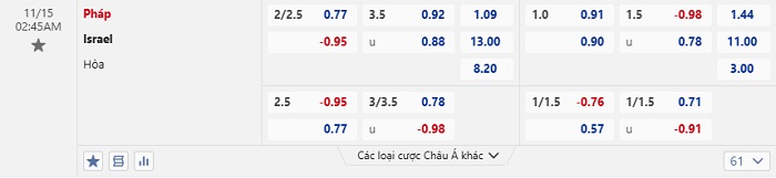 Tip kèo Châu Á full trận Pháp vs Israel