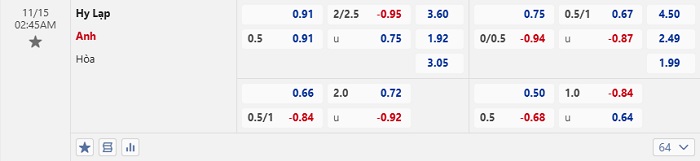 Tip kèo Châu Á full trận Hy Lạp vs Anh