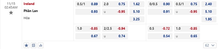 Tip kèo Châu Á hiệp 1 Ireland vs Phần Lan