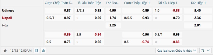 Tip kèo Châu Á hiệp 1 Udinese vs Napoli