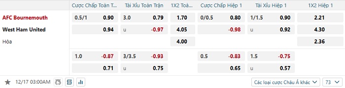 Tip kèo Châu Á full trận Famalicao vs West Ham