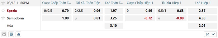 Tip kèo Châu Á full trận Spezia vs Sampdoria