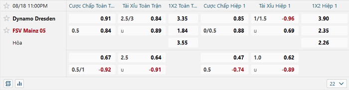 Tip kèo Châu Á full trận Dynamo Dresden vs Mainz 05