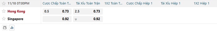 Tip kèo Châu Á hiệp 1 Hong Kong vs Singapore