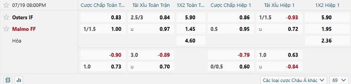 Tip kèo Châu Á hiệp 1 Osters vs Malmo
