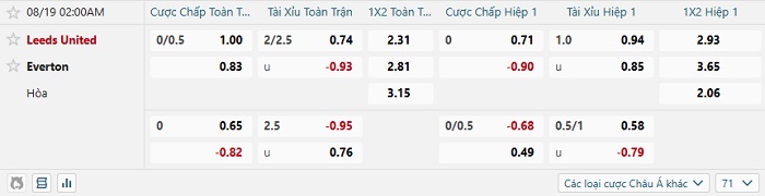 Tip kèo Châu Á hiệp 1 Leeds vs Everton