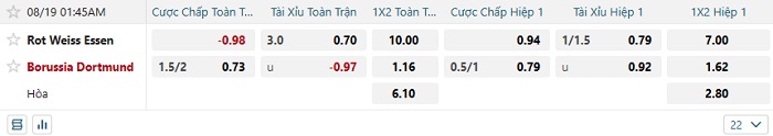 Tip kèo Châu Á full trận Rot Weiss vs Dortmund
