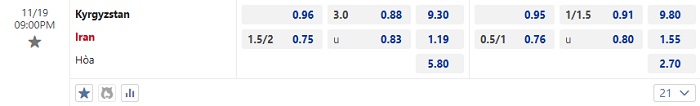 Tip kèo Châu Á full trận Kyrgyzstan vs Iran
