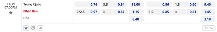 Tip kèo Châu Á hiệp 1 Trung Quốc vs Nhật Bản