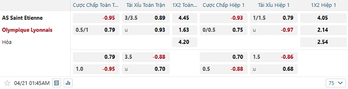 Tip kèo Châu Á hiệp 1 Saint Etienne vs Lyon