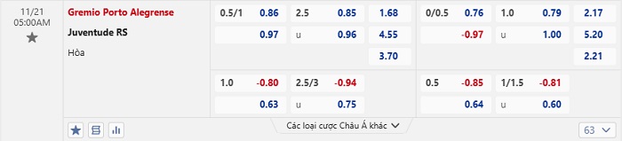 Tip kèo Châu Á full trận Gremio vs Juventude