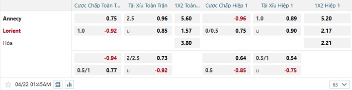 - Dự đoán tỷ số hiệp 1: Annecy 0 – 1 Lorient