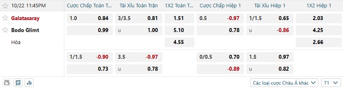 Tip kèo Châu Á hiệp 1 Galatasaray vs Bodo Glimt