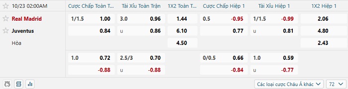Tip kèo Châu Á hiệp 1 Real Madrid vs Juventus