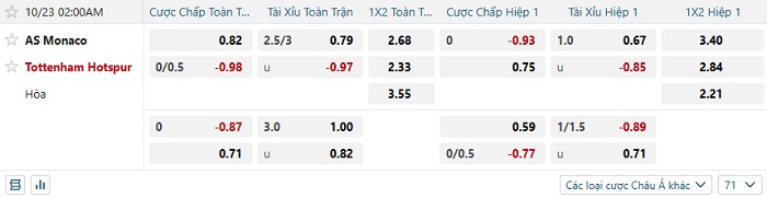 Tip kèo Châu Á hiệp 1 Monaco vs Tottenham