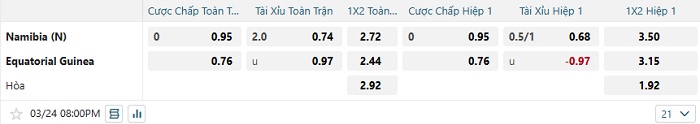 Tip kèo Châu Á hiệp 1 Namibia vs Equatorial