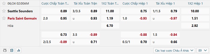 Tip kèo Châu Á hiệp 1 Seattle Sounders vs PSG