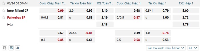 Tip kèo Châu Á hiệp 1 Inter Miami vs Palmeiras