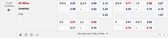 Tip kèo Châu Á full trận Milan vs Juventus