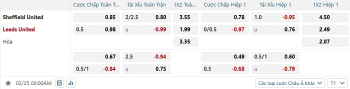 Tip kèo Châu Á full trận Sheffield vs Leeds United