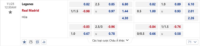 Tip kèo Châu Á full trận Leganes vs Real Madrid