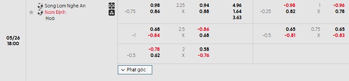 Tip kèo Châu Á full trận Sông Lam Nghệ An vs Nam Định