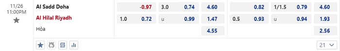 Tip kèo Châu Á full trận Al Sadd vs Al Hilal