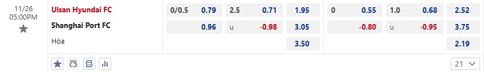 - Dự đoán tỷ số hiệp 1: Ulsan Hyundai 0 – 0 Shanghai Port