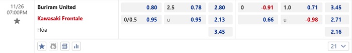 Tip kèo Châu Á hiệp 1 Buriram vs Kawasaki Frontale