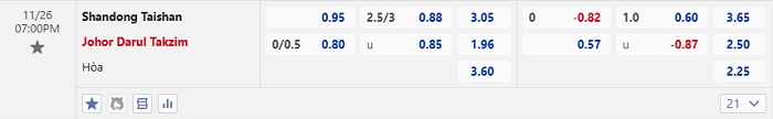Tip kèo Châu Á hiệp 1 Shandong Taishan vs Johor Darul