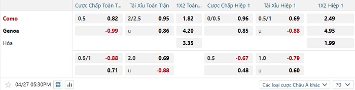 Tip kèo Châu Á hiệp 1 Como vs Genoa