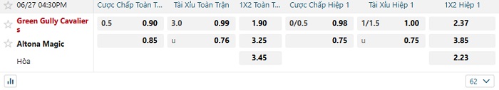 Tip kèo Châu Á full trận Green Gully vs Altona Magic
