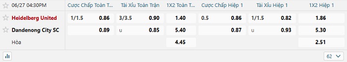Tip kèo Châu Á full trận Heidelberg vs Dandenong City
