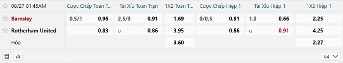 Tip kèo Châu Á full trận Barnsley vs Rotherham