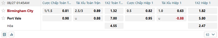 Tip kèo Châu Á full trận Birmingham vs Port Vale