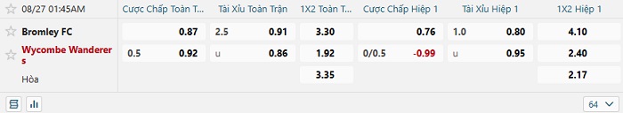 Tip kèo Châu Á full trận Bromley vs Wycombe