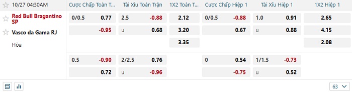 - Dự đoán tỷ số hiệp 1: Bragantino 0 – 0 Vasco da Gama