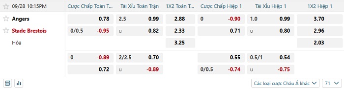 Tip kèo Châu Á hiệp 1 Angers vs Brest