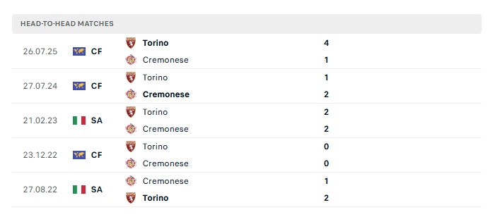 Nhìn vào những thống kê được đưa ra, không có gì bất ngờ khi mà Torino sẽ thất bại trước Cremonese hôm nay. Trong 5 lần Torino đón tiếp Cremonese tại sân nhà gần nhất, cả hai đội đều có 1 chiến thắng và hòa 3. Thậm chí, cả 3 trận sân nhà gần nhất của Torino, họ không thắng với 1 hòa và 2 thua. Do đó, kèo châu Âu trận đấu hôm nay sẽ có Cremonese là lựa chọn an toàn nhất.
