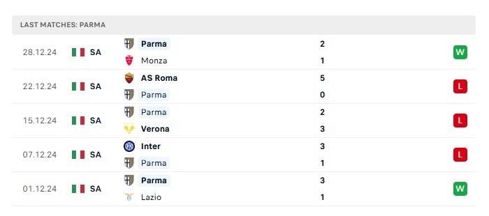 Parma: Suzuki; Coulibaly, Valenti, Balogh, Leoni; Hernani, Sohm; Man, Haj Mohamed, Almqvist; Bonny.